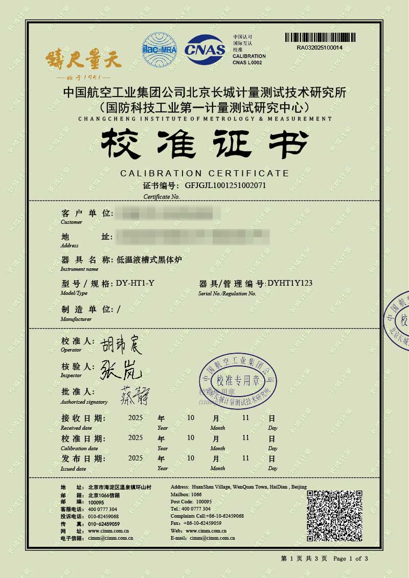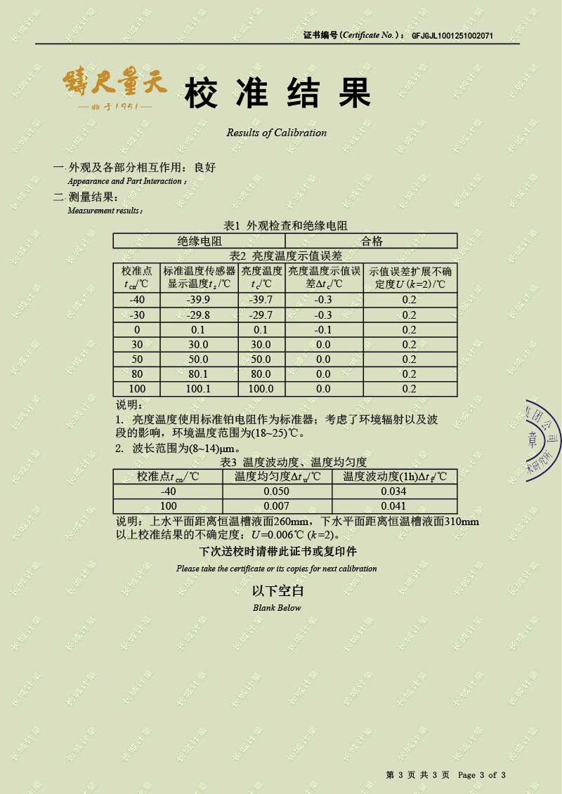 低溫液槽式黑體爐(-40-100℃)校準(zhǔn)證書 2025-10-30 本文被閱讀 722 次