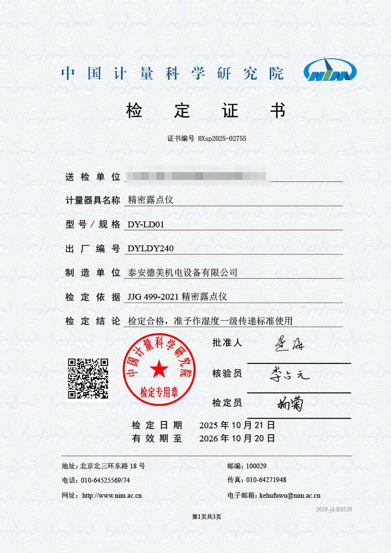 露點儀檢定證書 2025-10-30 本文被閱讀 835 次