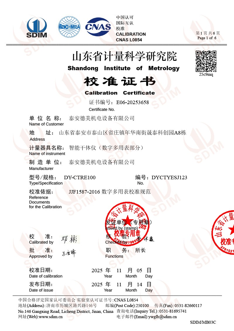 智能干體儀(六位半精度)校準(zhǔn)證書 2025-11-14 本文被閱讀 557 次