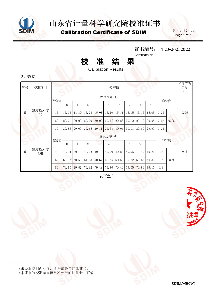 溫濕度檢定箱校準(zhǔn)證書(shū)