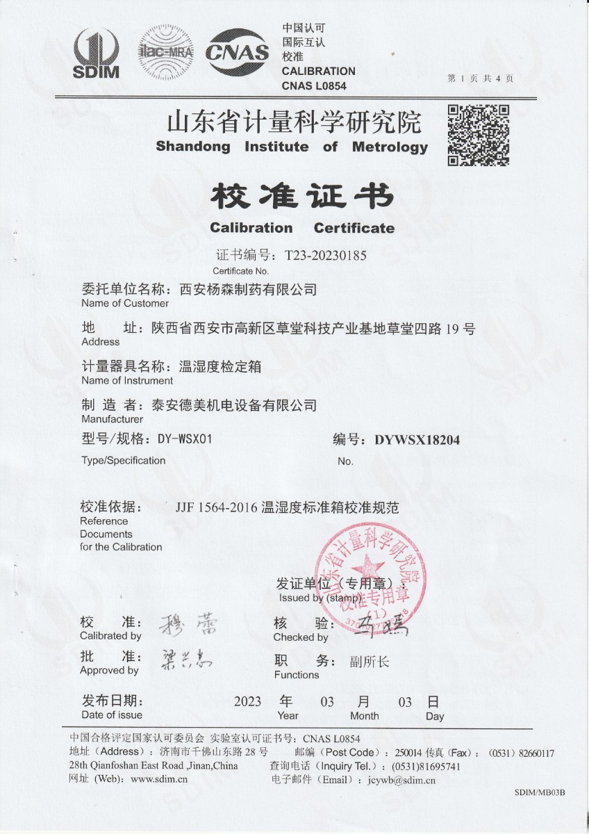 | 上一條:西安天元航空科技股份有限公司 電壓電流校驗(yàn)儀 校準(zhǔn)證書 | 下一條:高精度制冷恒溫槽(-80~100℃)校準(zhǔn)證書 |