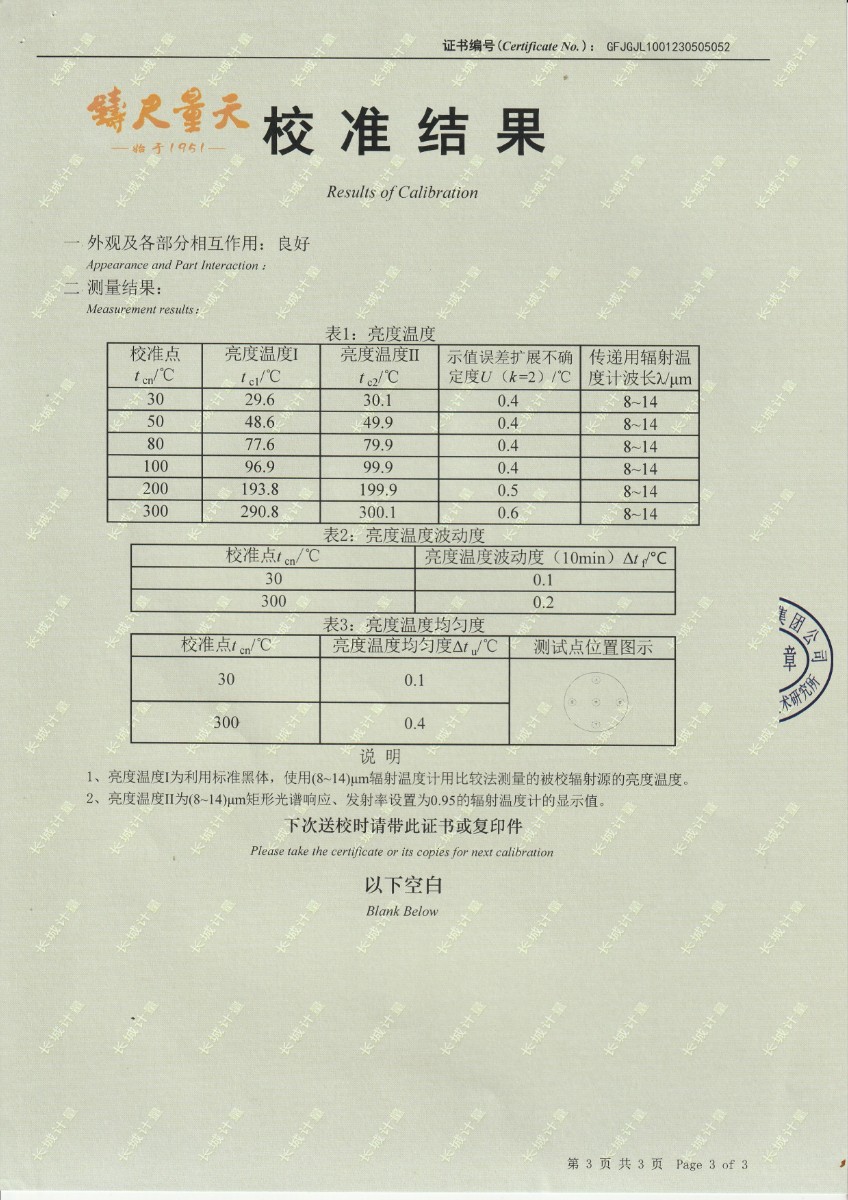 西安機電信息技術研究所 面源黑體爐 校準證書 2023-5-18 本文被閱讀 13422 次