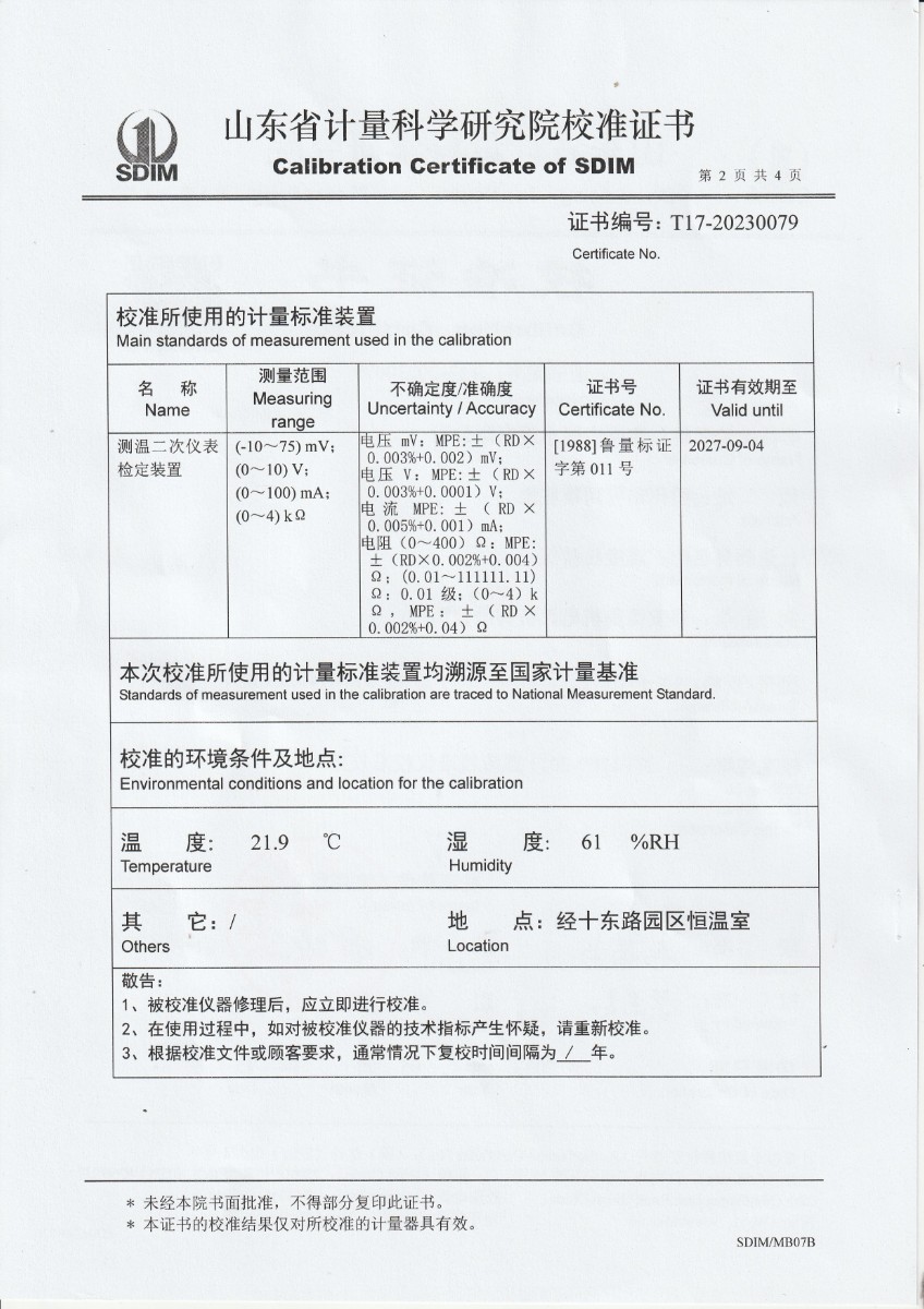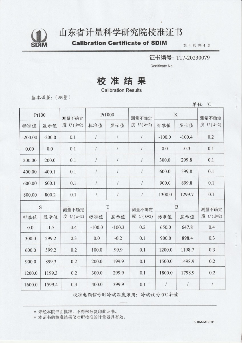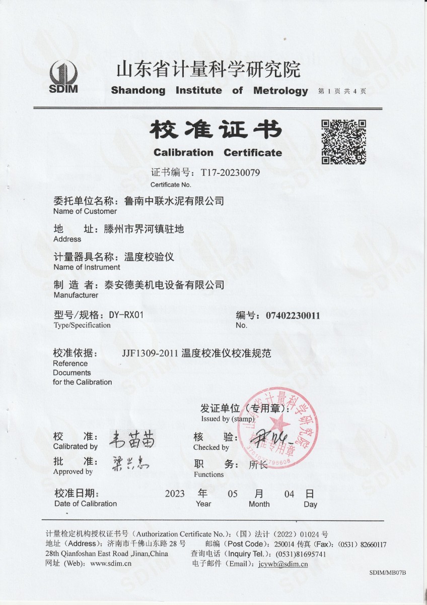 | 上一條:魯南中聯(lián)水泥有限公司 高精度數(shù)字溫度計(jì) 校準(zhǔn)證書 | 下一條:高精度制冷恒溫槽(-80~100℃)校準(zhǔn)證書 |
