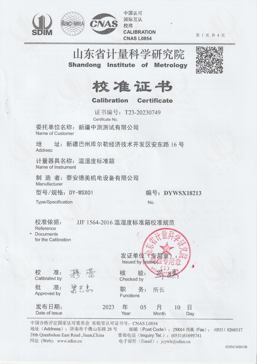 | 上一條:越南晶科能源實(shí)業(yè)有限責(zé)任公司 溫濕度標(biāo)準(zhǔn)箱 校準(zhǔn)證書 | 下一條:高精度制冷恒溫槽(-80~100℃)校準(zhǔn)證書 |