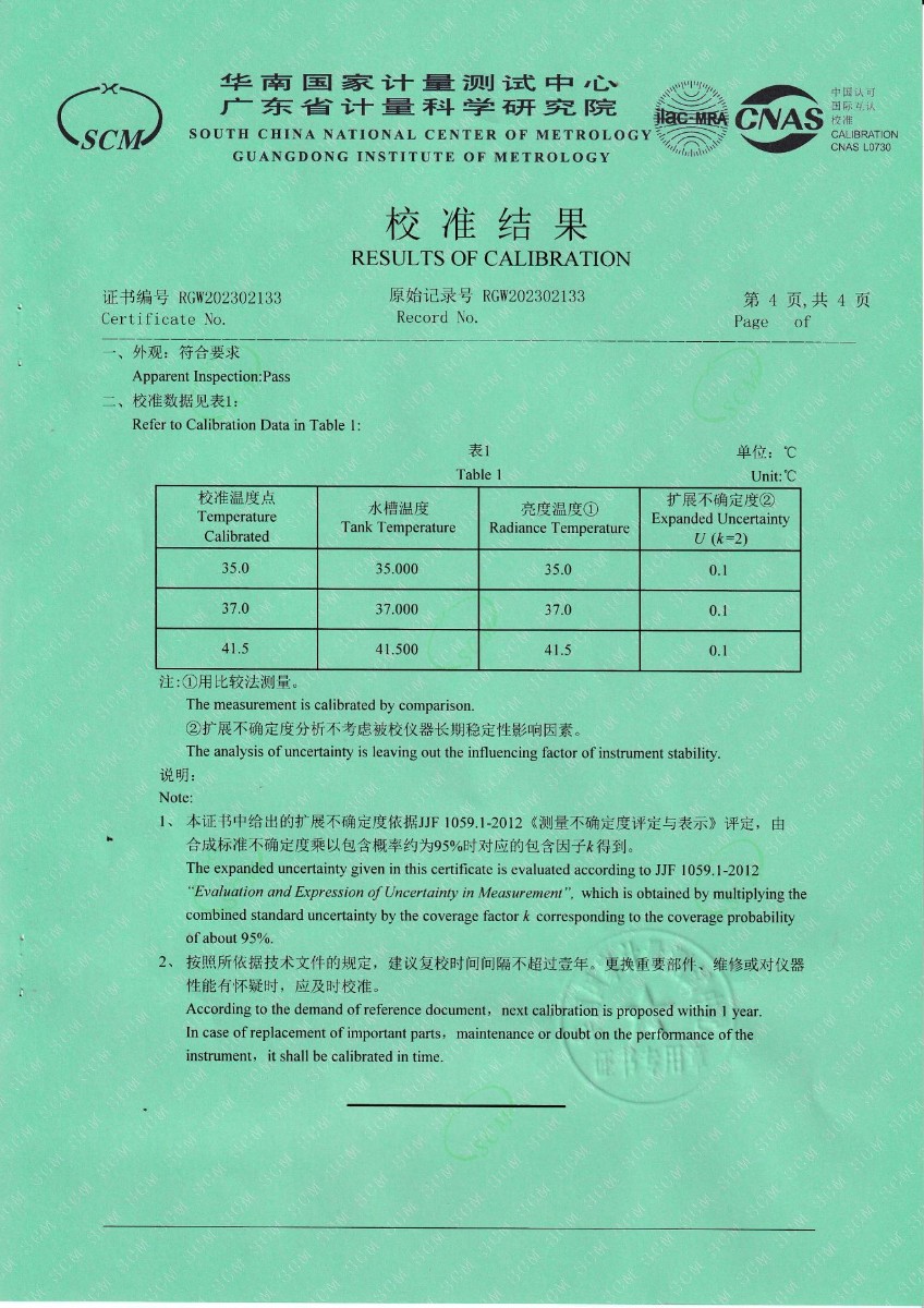 上一條:山東凱利布森測控技術有限公司 額溫空腔(黑體輻射源) 校準證書下一條:高精度制冷恒溫槽(-80~100℃)校準證書