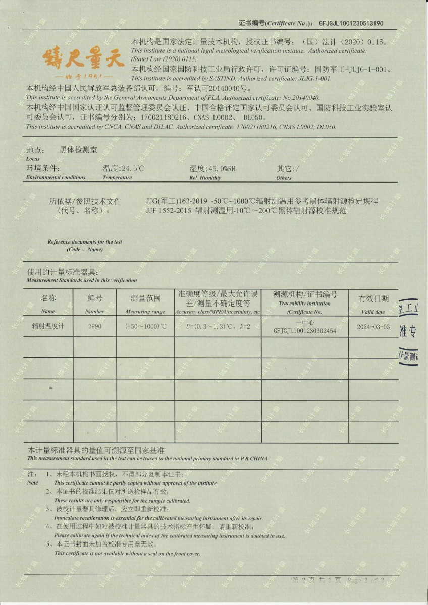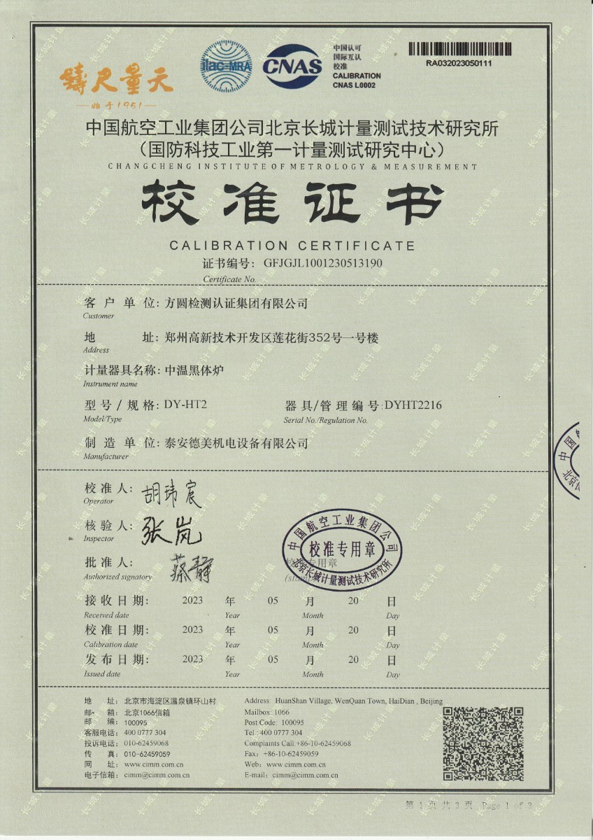 | 上一條:山東凱利布森測控技術(shù)有限公司 耳溫空腔(黑體輻射源) 校準證書 | 下一條:高精度制冷恒溫槽(-80~100℃)校準證書 |