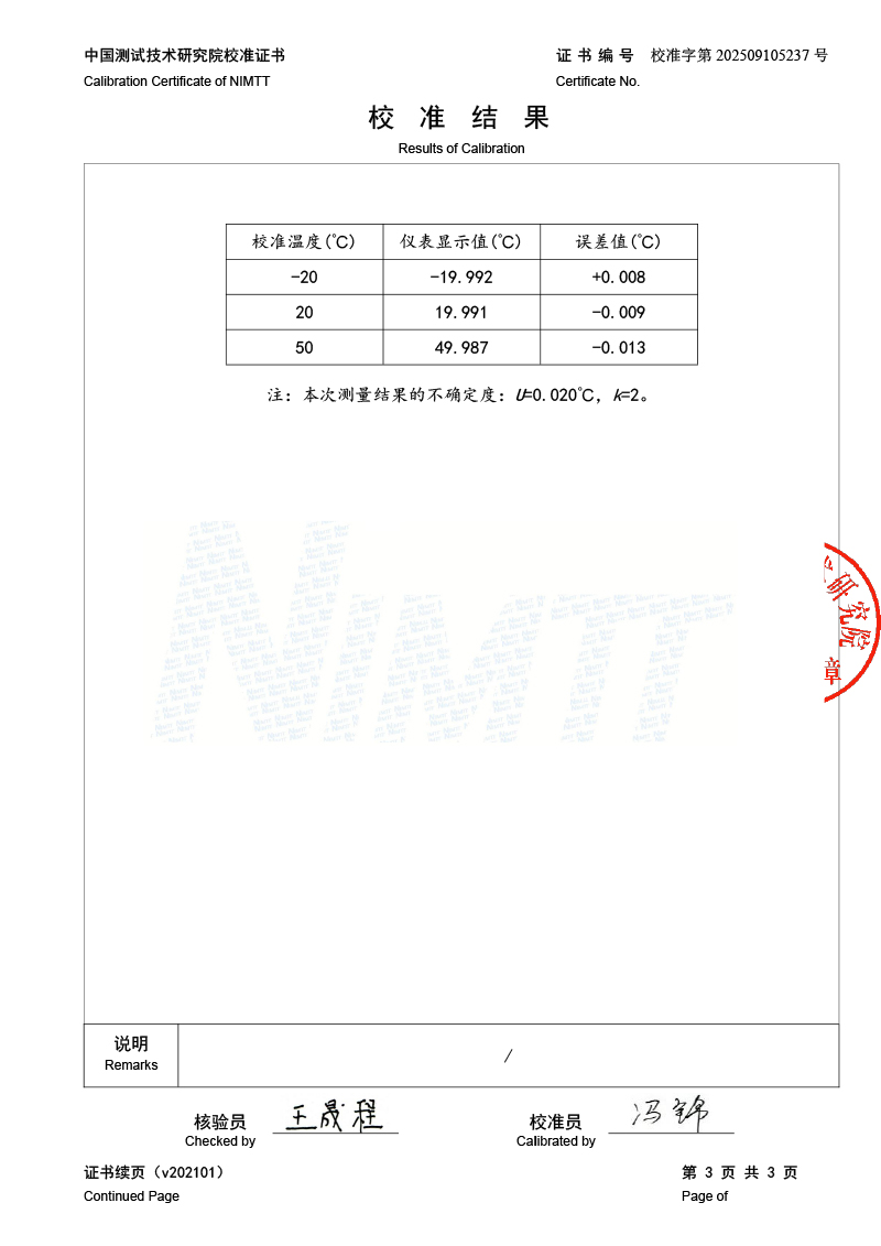 高精度數字溫度計(-20-100℃)校準證書 2025-9-27 本文被閱讀 1650 次