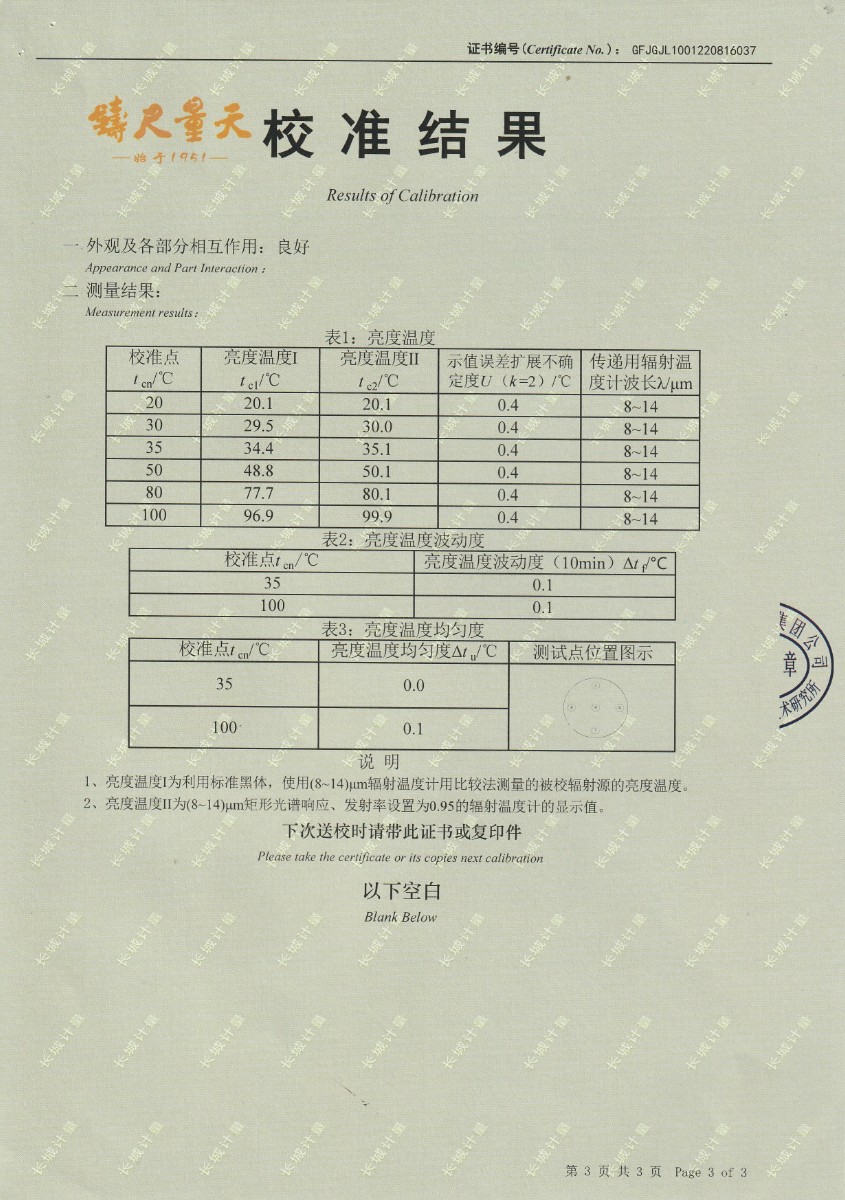 上一條:晶科能源(肥東)公司-黑體輻射源下一條:高精度制冷恒溫槽(-80~100℃)校準證書