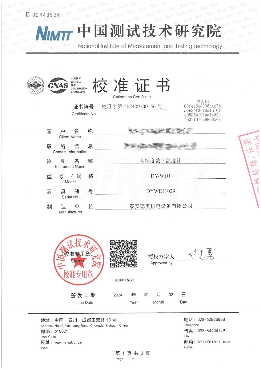 | 上一條:DY-HT1MA低溫面源黑體爐,輻射面100mm(-20℃~80℃) | 下一條:高精度制冷恒溫槽(-80~100℃)校準(zhǔn)證書(shū) |