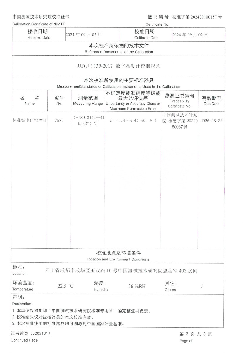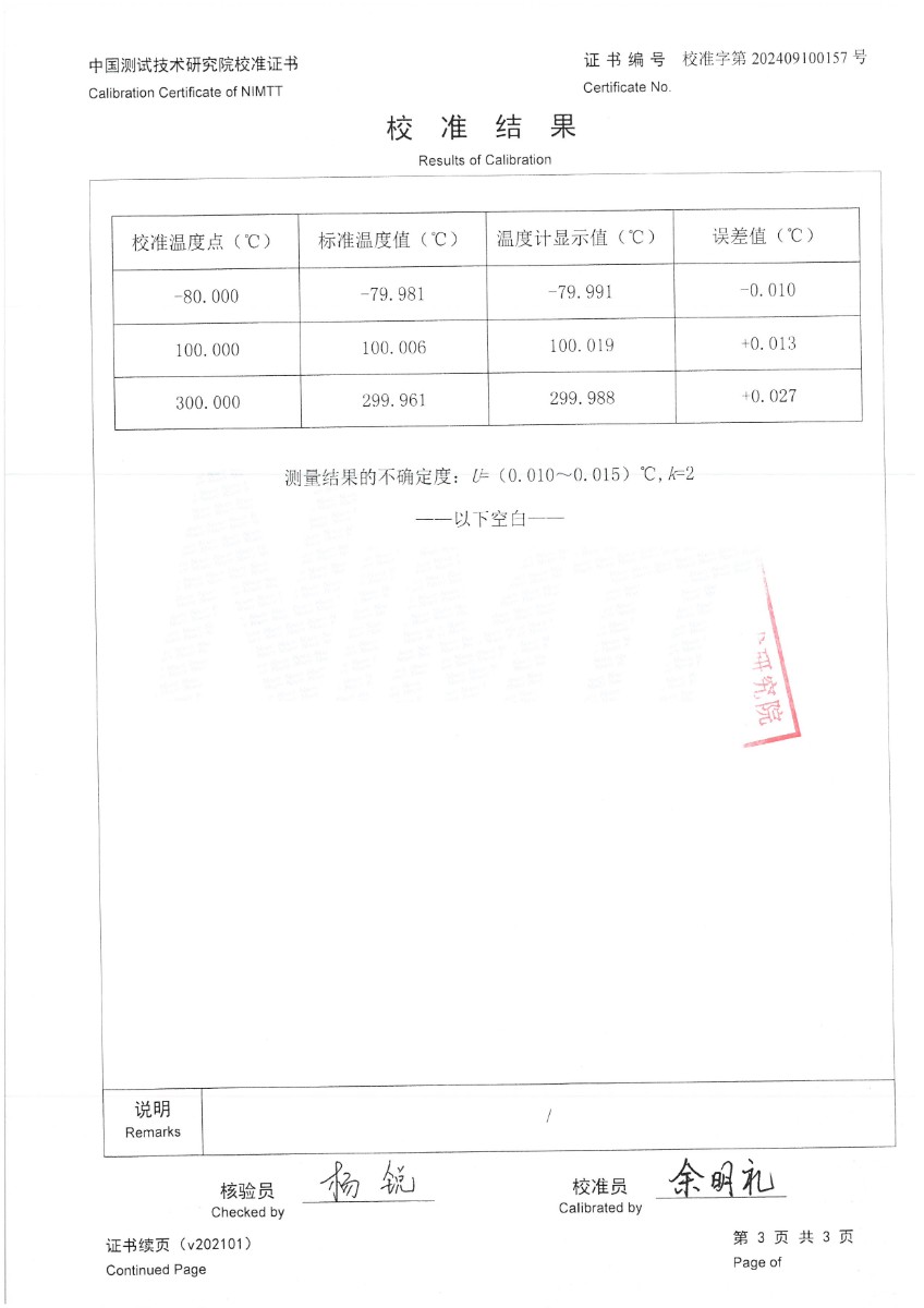 上一條:高精度數字溫度計(-50~200℃)校準證書下一條:高精度制冷恒溫槽(-80~100℃)校準證書