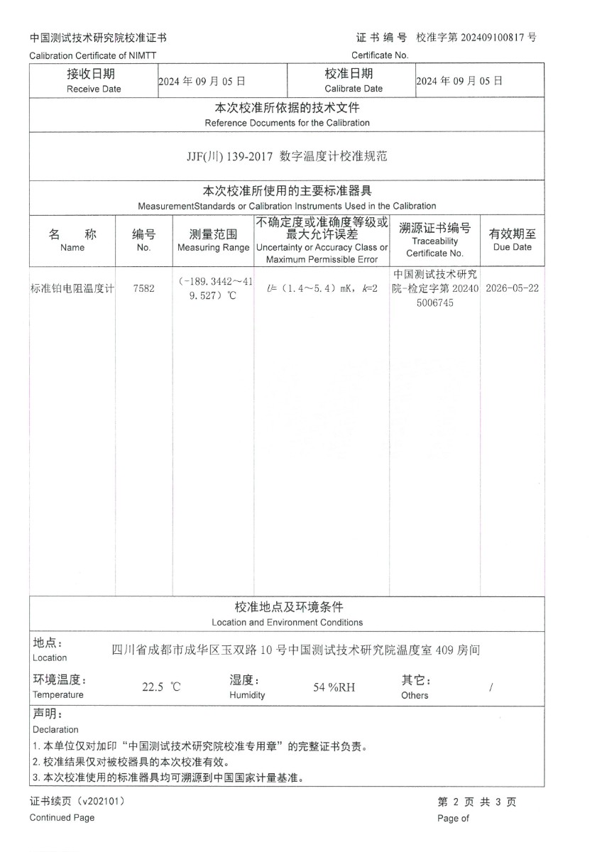 | 上一條:手持高精度數(shù)字溫度計(jì)(-80~300℃)校準(zhǔn)證書 | 下一條:高精度制冷恒溫槽(-80~100℃)校準(zhǔn)證書 |