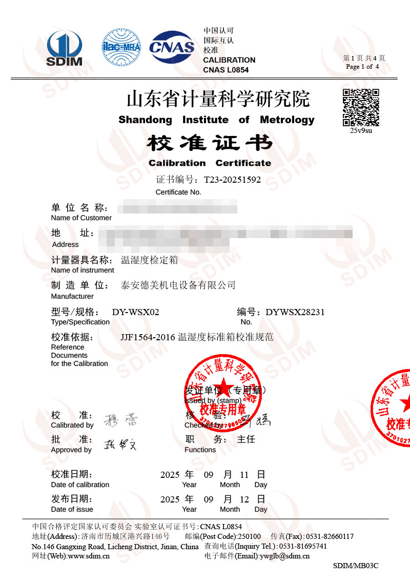 溫濕度檢定箱(-20-70℃)校準證書 2025-9-18 本文被閱讀 2356 次
