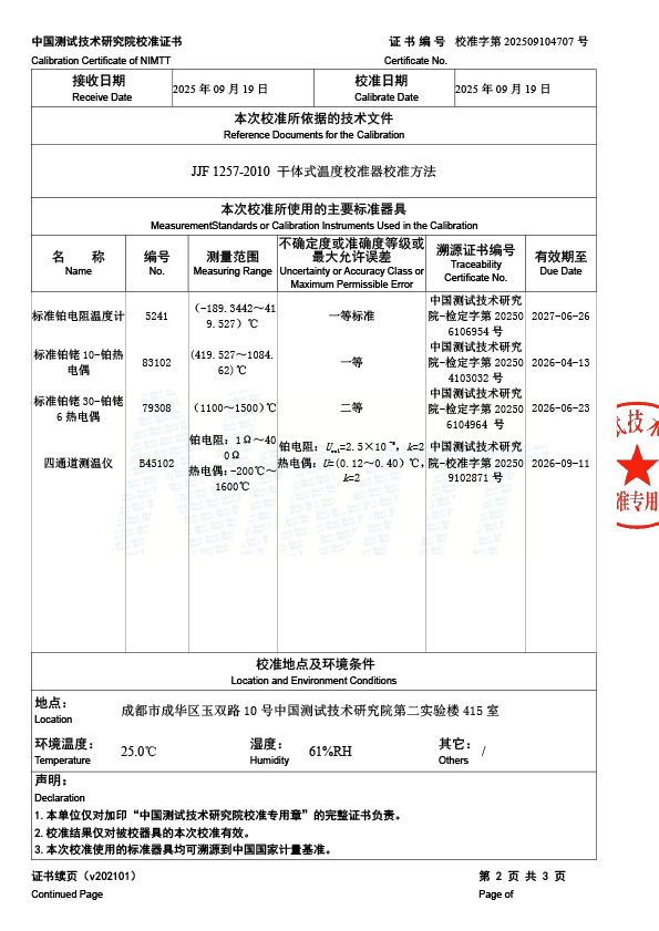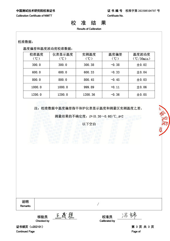 高溫干體爐(300-1200℃)校準證書 2025-9-22 本文被閱讀 1577 次