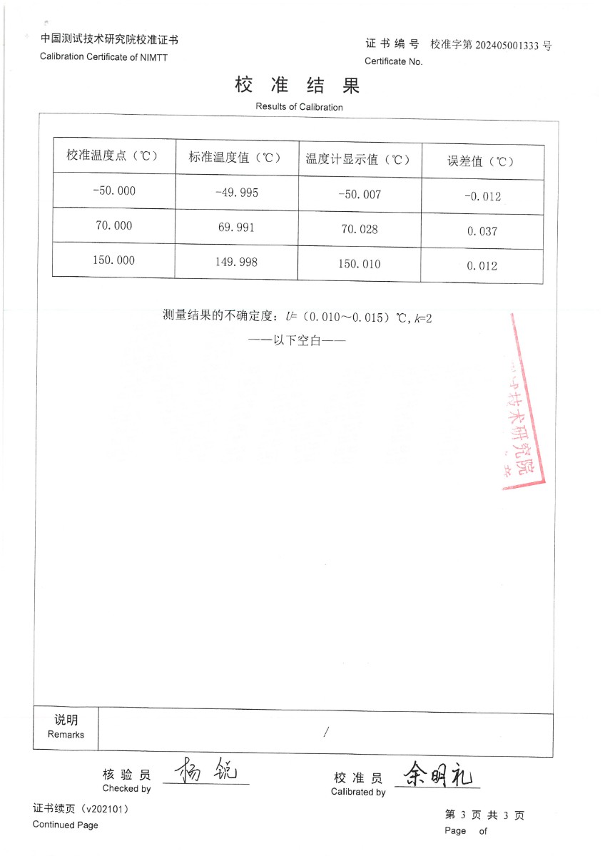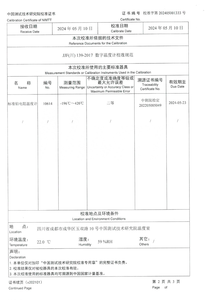 高精度數字溫度計校準證書 2024-5-14 本文被閱讀 6459 次