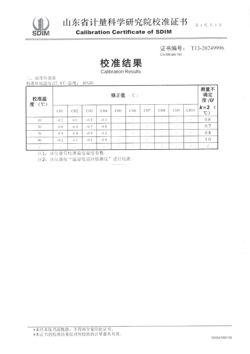 溫濕度巡檢儀測試系統校準證書 2024-5-18 本文被閱讀 6403 次