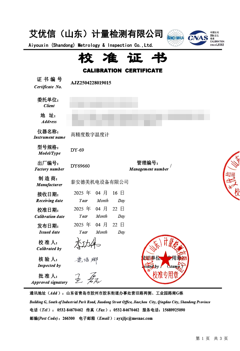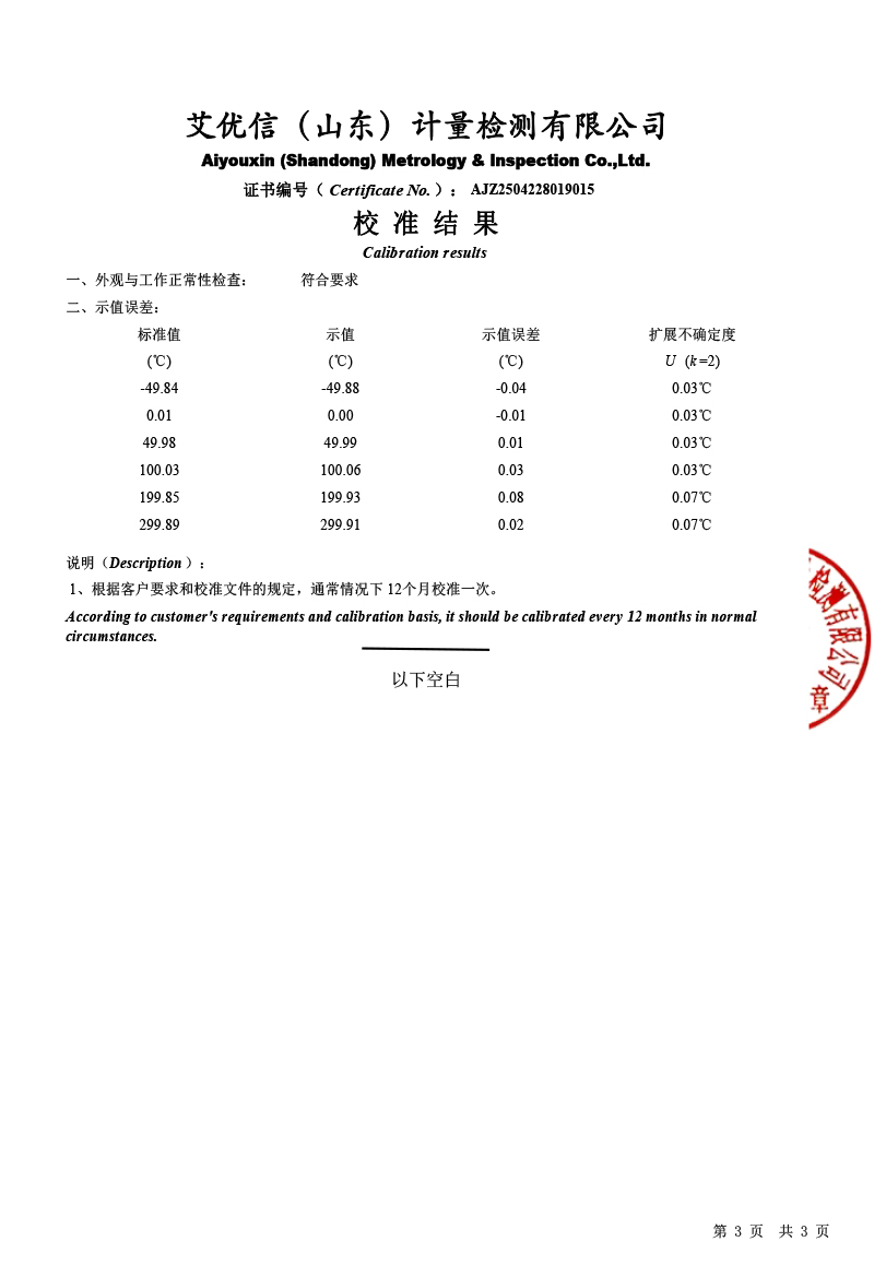 高精度數字溫度計(-50-450℃)校準證書 2025-4-24 本文被閱讀 2692 次