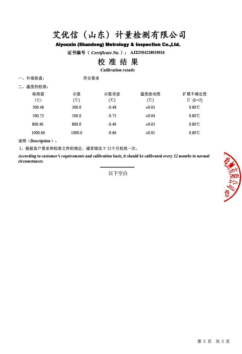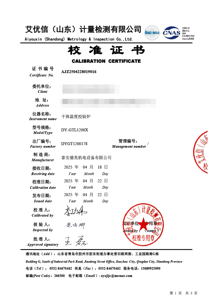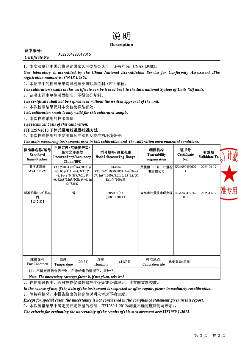 干體溫度校驗爐(300-1200℃)校準證書 2025-4-24 本文被閱讀 3461 次