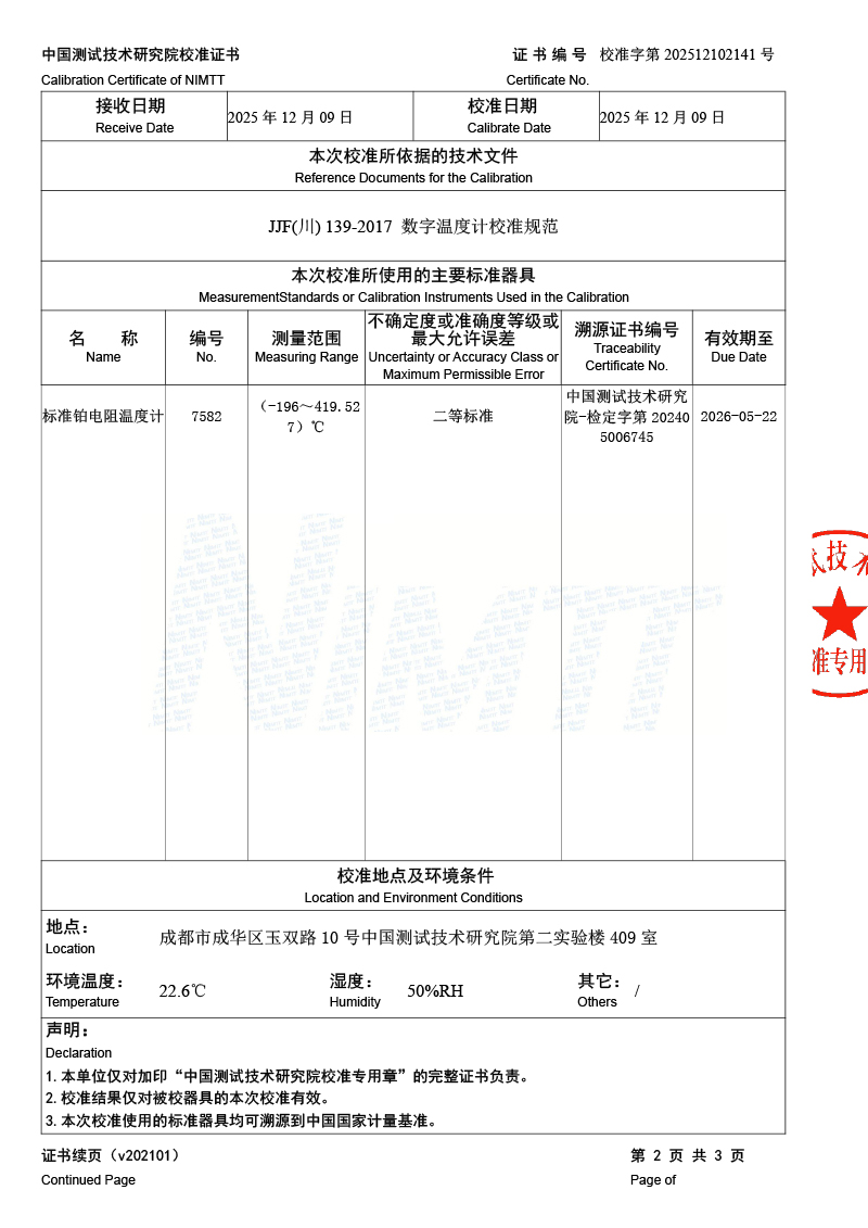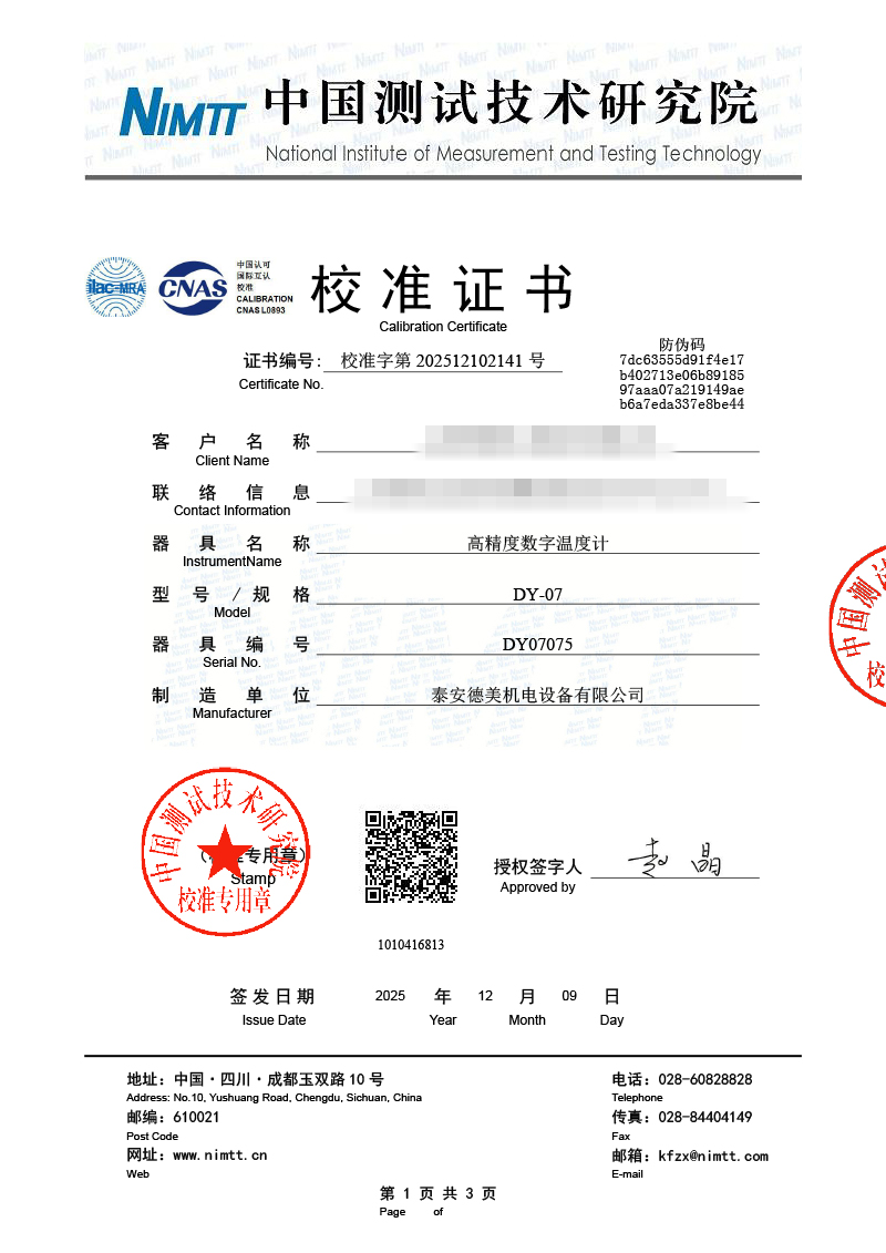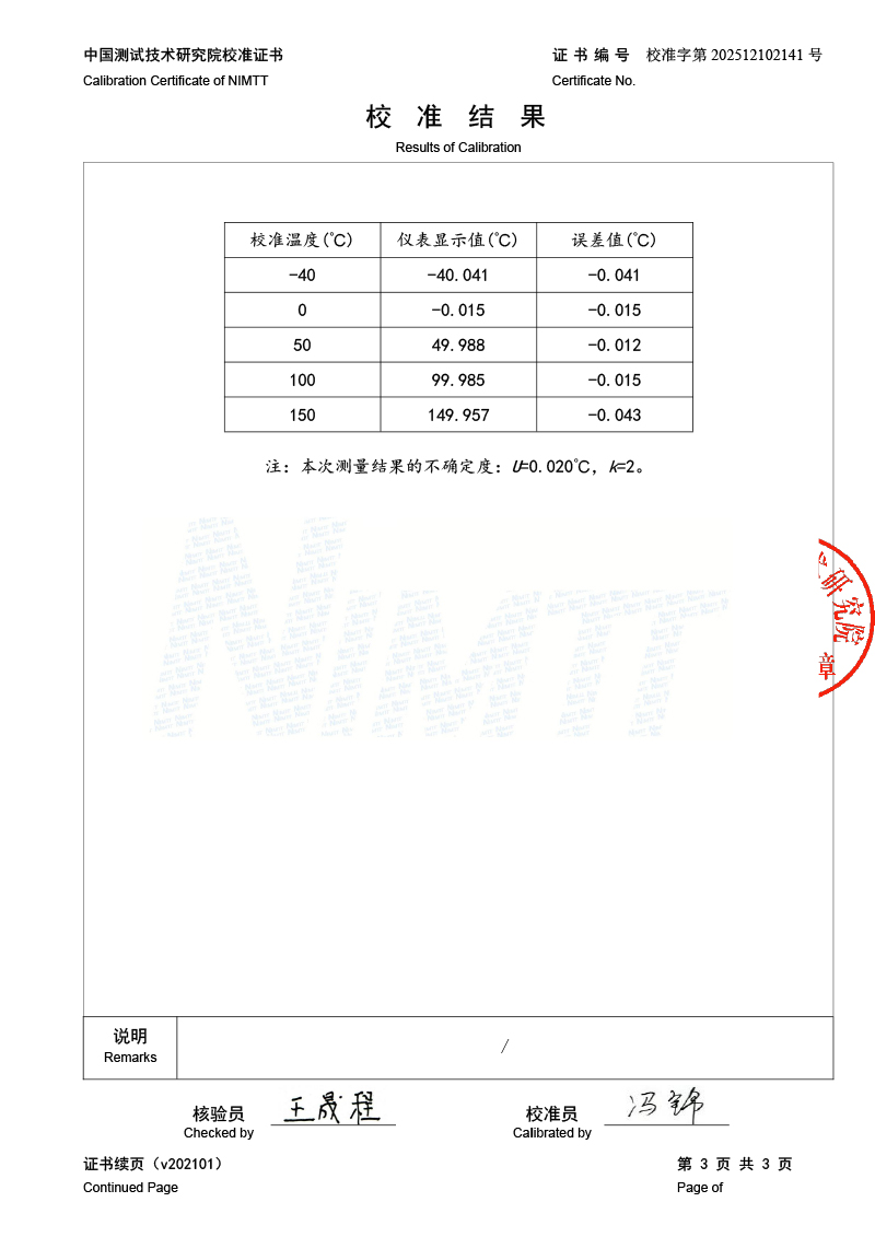 | 上一條:露點(diǎn)儀檢定、校準(zhǔn)證書(shū) | 下一條:溫濕度檢定箱校準(zhǔn)證書(shū) |