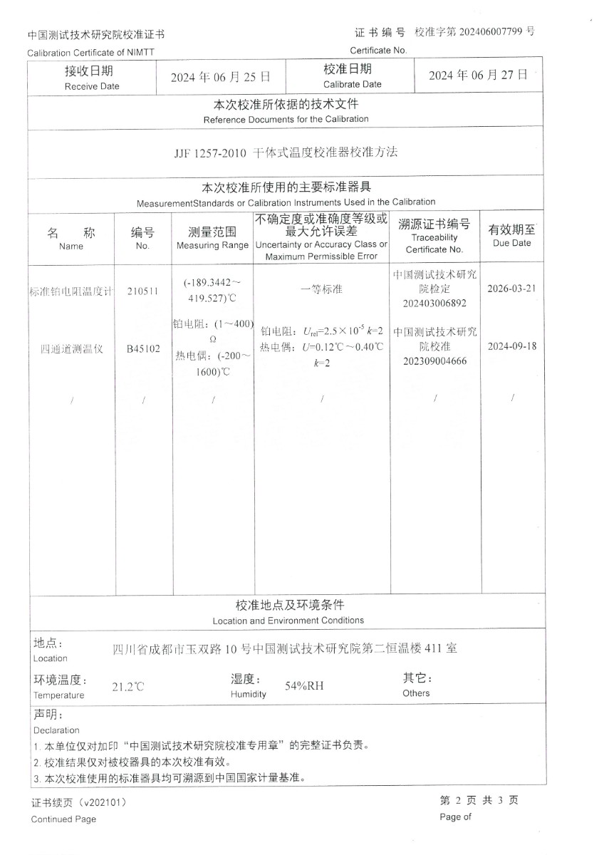 上一條:高溫干體爐(300~1200℃)校準證書下一條:高精度制冷恒溫槽(-80~100℃)校準證書