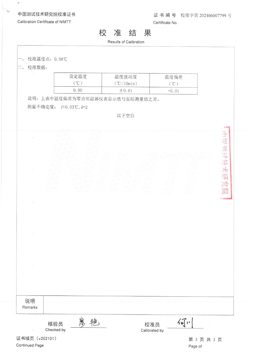 零點恒溫器校準證書 2024-7-1 本文被閱讀 6297 次