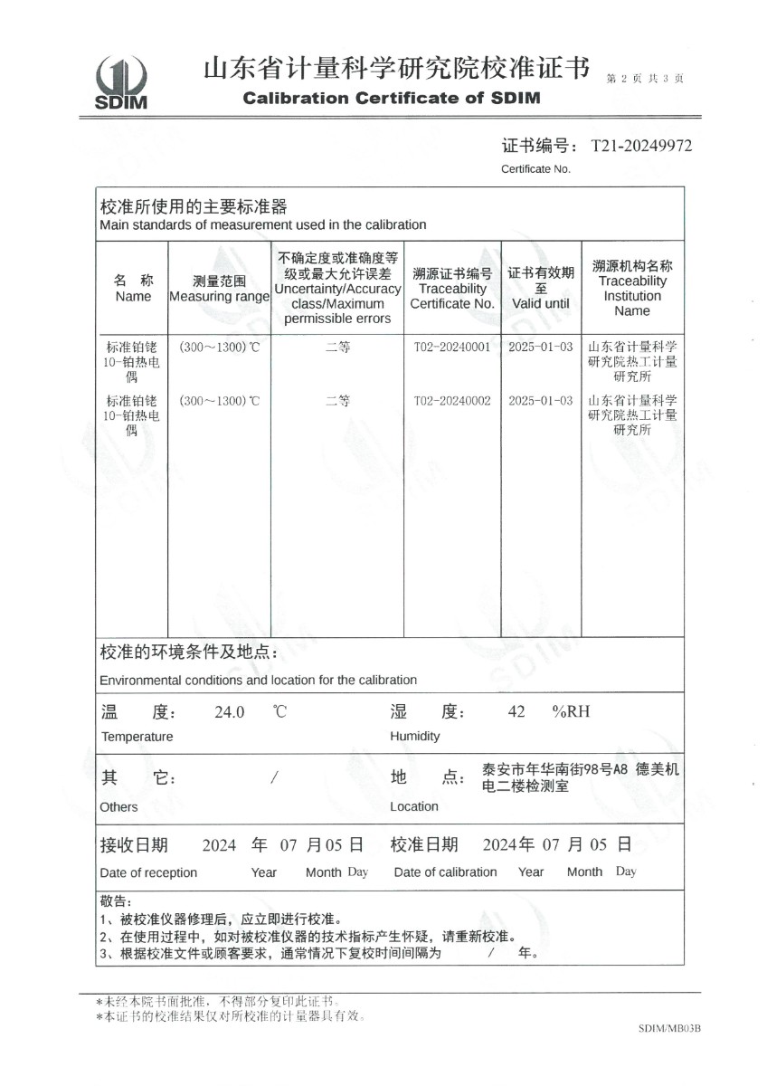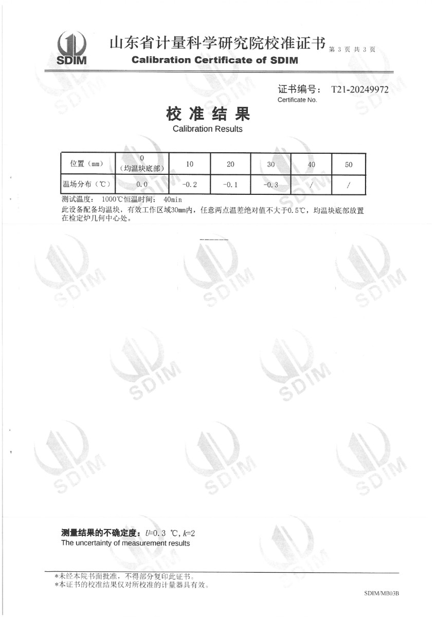 熱電偶檢定爐(300~1200℃)校準證書 2024-7-11 本文被閱讀 6863 次