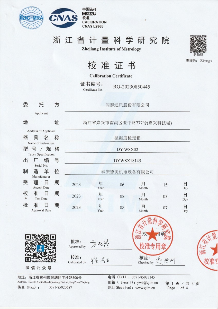 聞泰通訊股份有限公司-溫濕度檢定箱 2023-8-12 本文被閱讀 12629 次