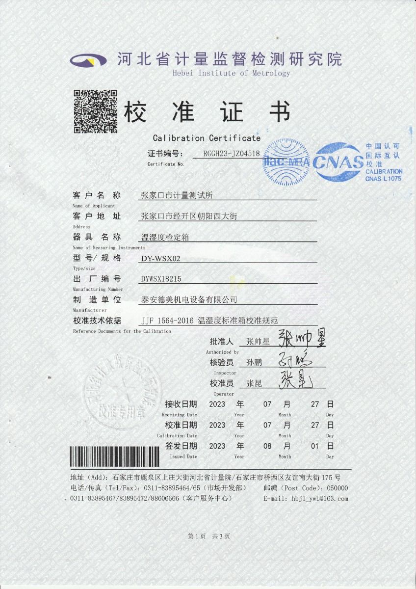 張家口市計量測試所-溫濕度檢定箱 2023-8-12 本文被閱讀 15032 次