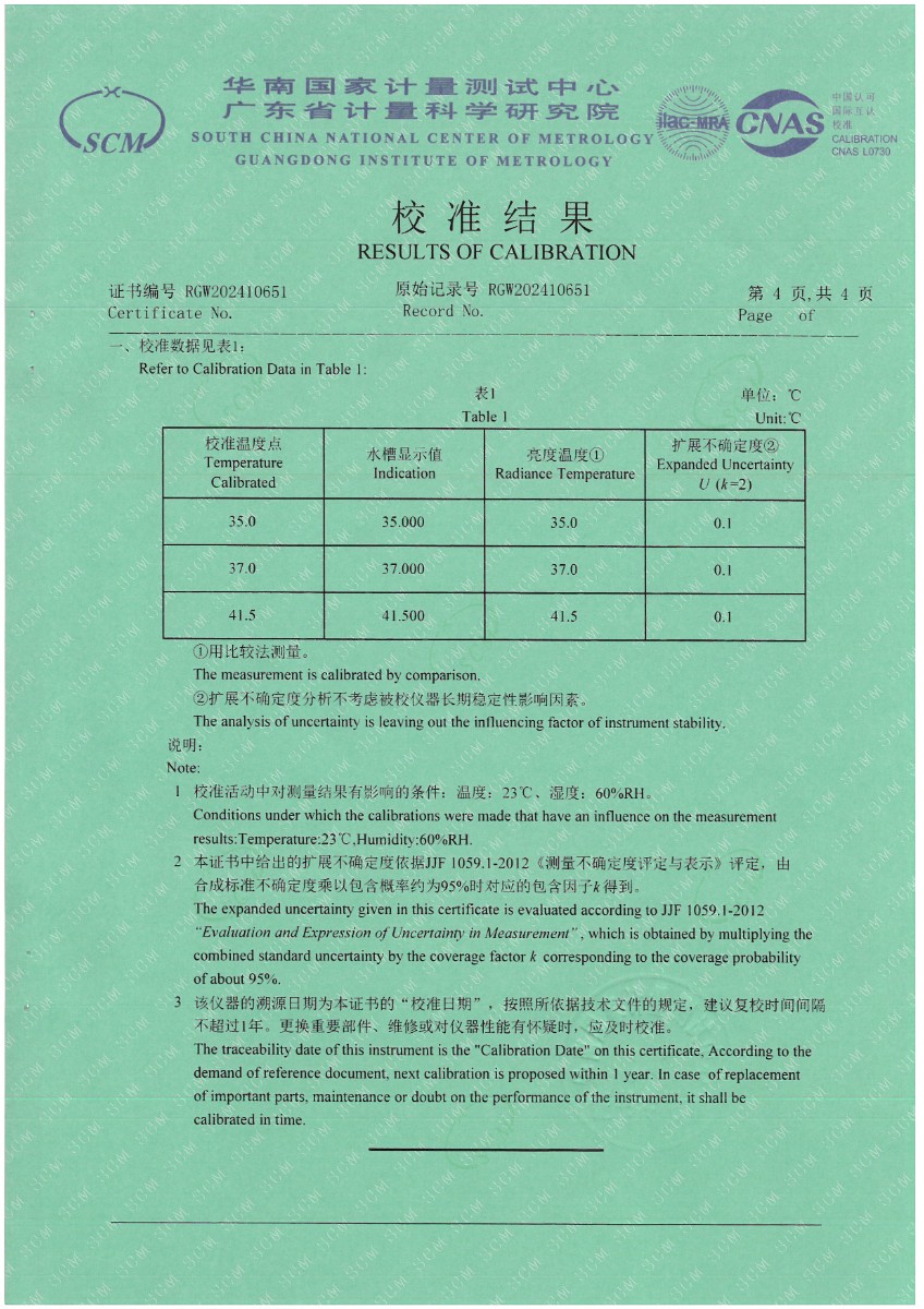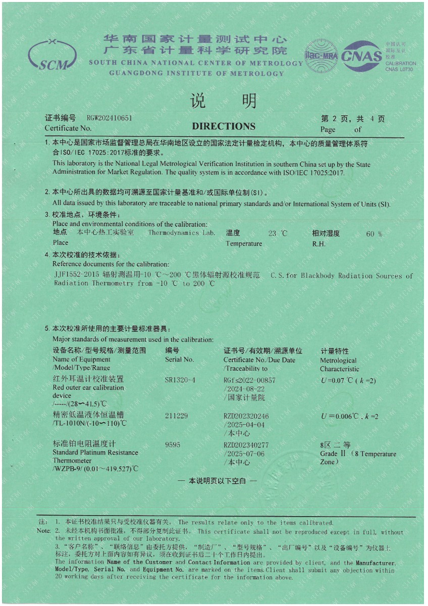 耳溫空腔(黑體輻射源)校準證書 2024-5-27 本文被閱讀 6614 次