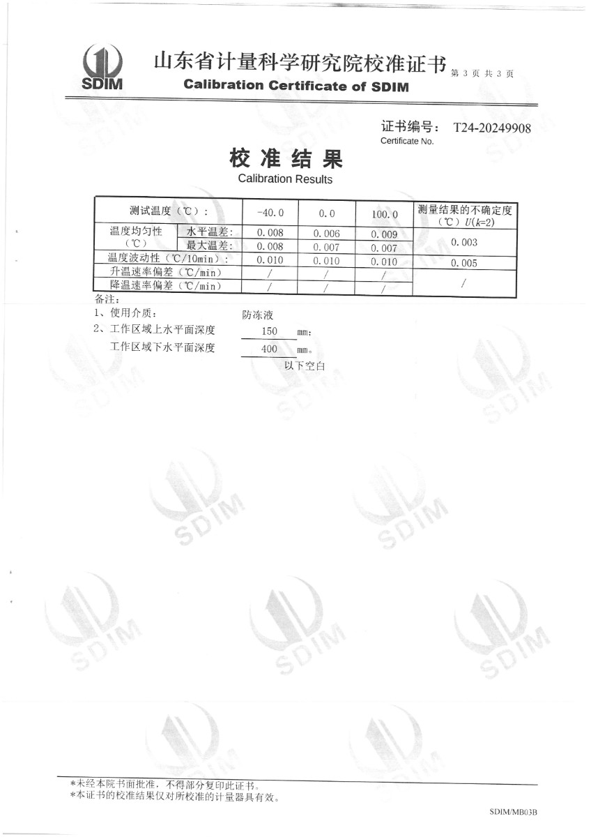 制冷恒溫槽(-40~100℃)校準證書 2024-5-31 本文被閱讀 6601 次