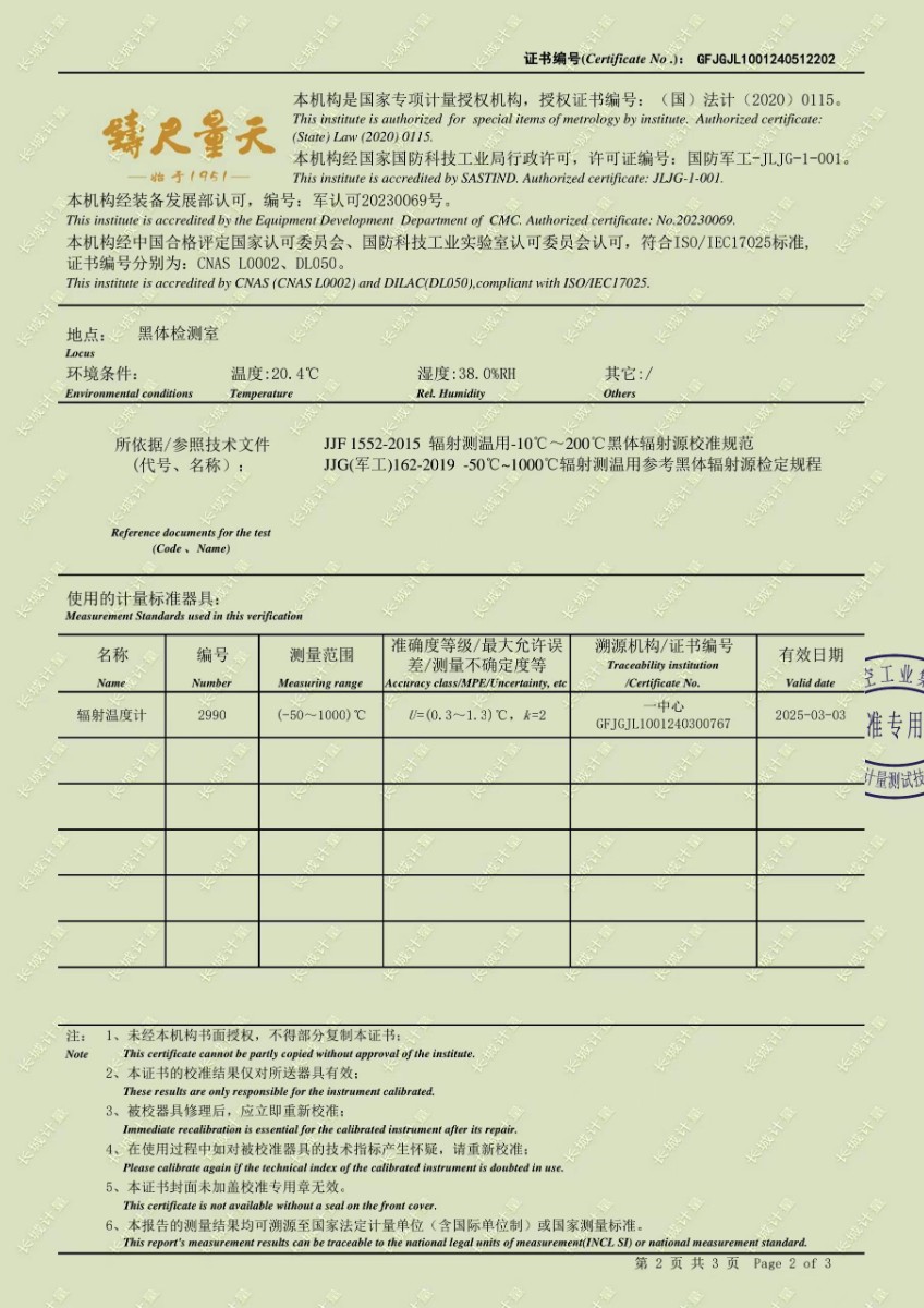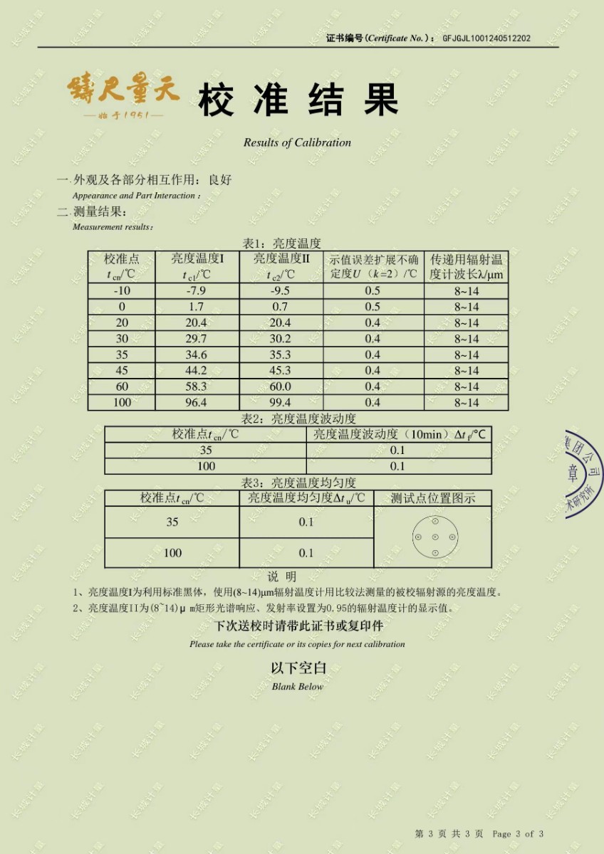 高精度低溫黑體234校準證書 2024-5-31 本文被閱讀 6717 次