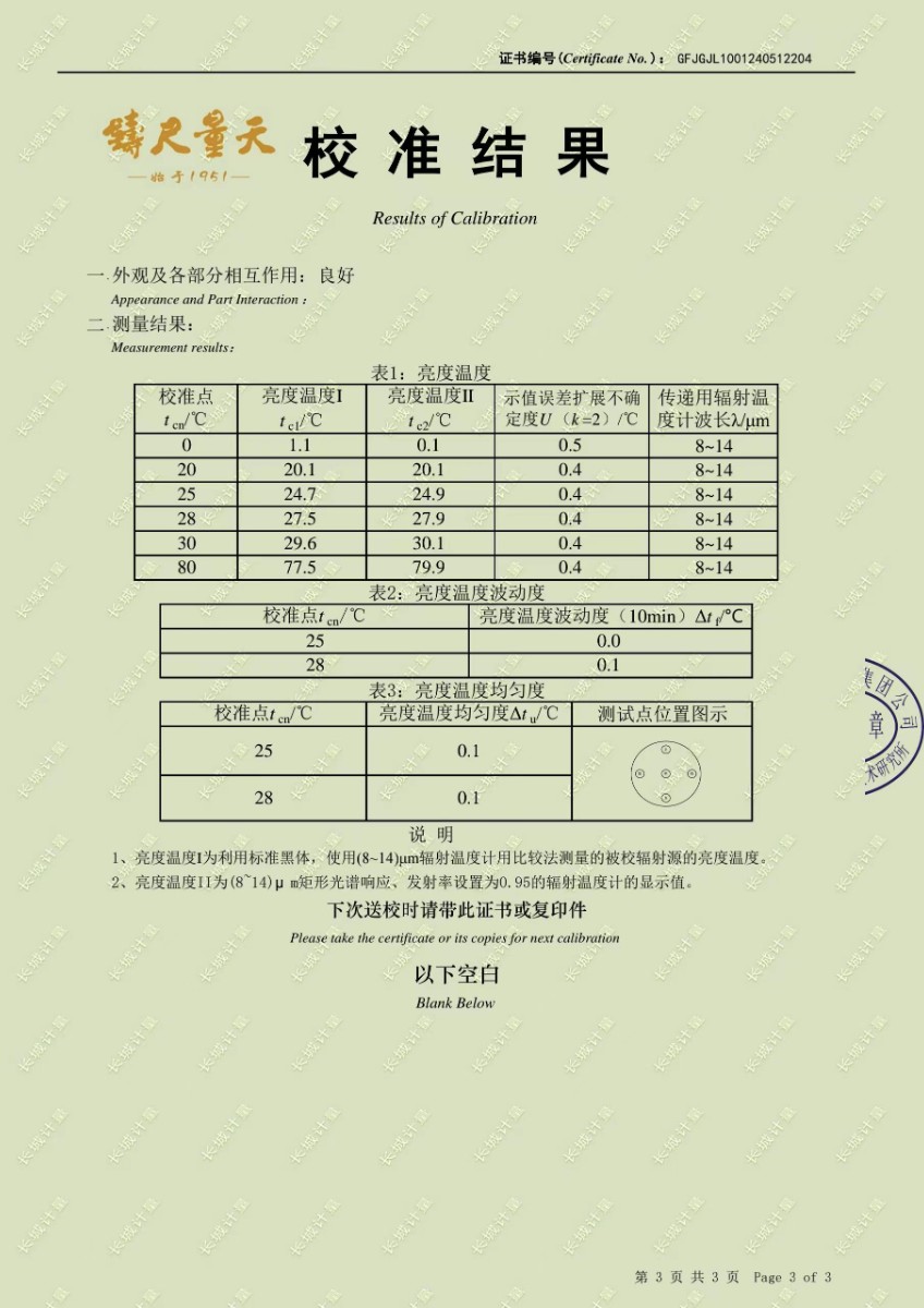 面源黑體爐校準證書 2024-5-31 本文被閱讀 7109 次