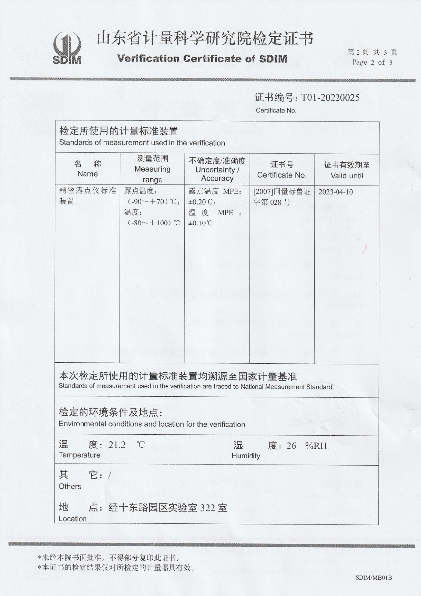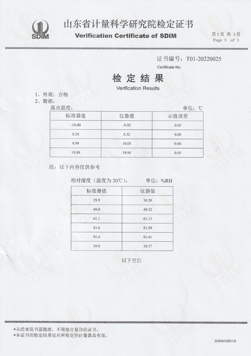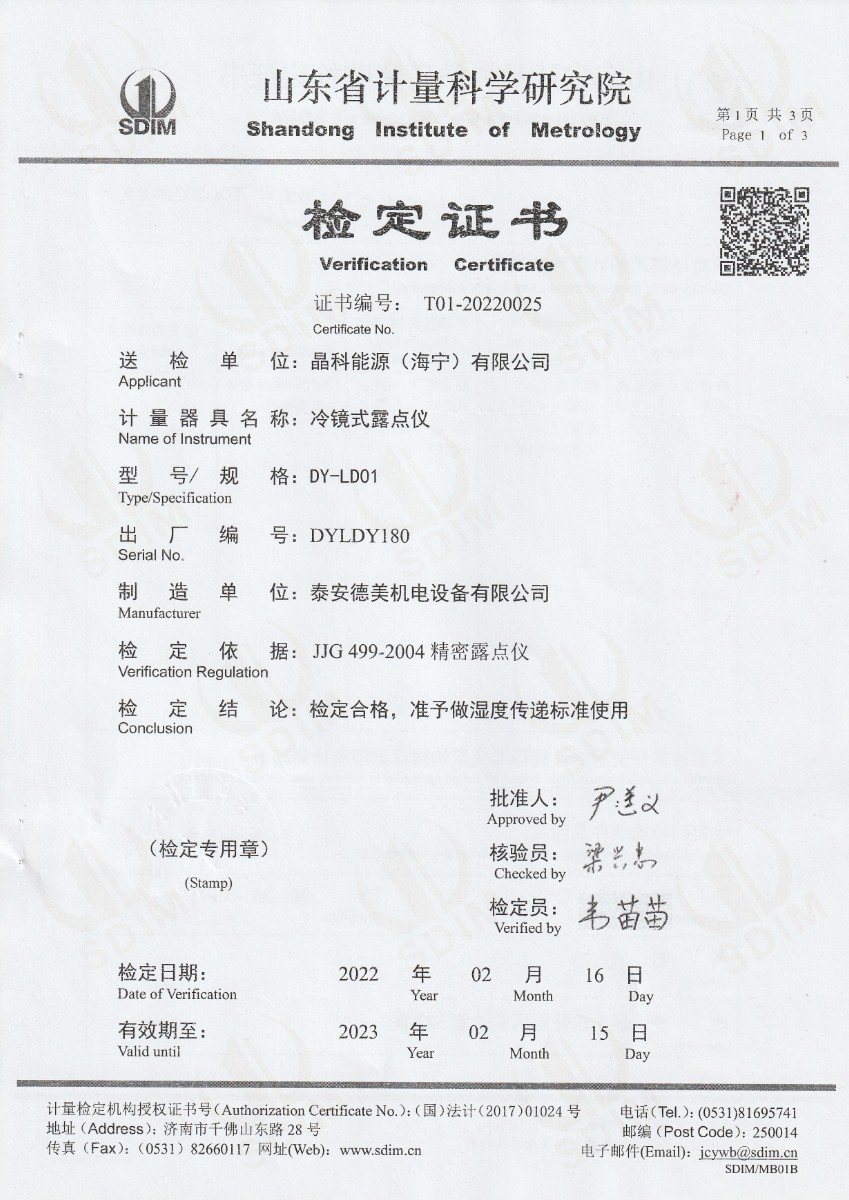 晶科能源(海寧)有限公司-冷鏡式露點儀檢定證書 2022-2-23 本文被閱讀 13949 次