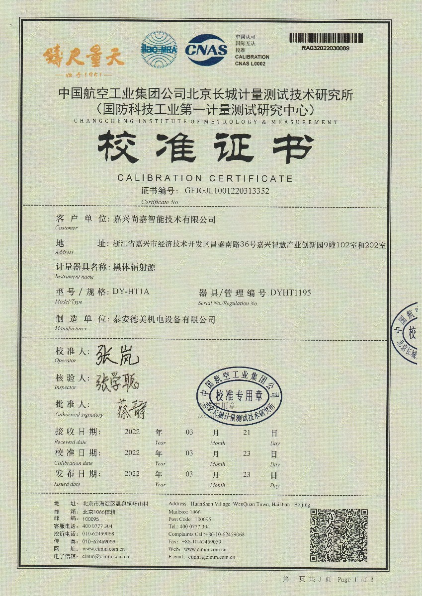 嘉興尚嘉智能技術有限公司-黑體輻射源(DY-HT1A) 2022-3-29 本文被閱讀 13488 次