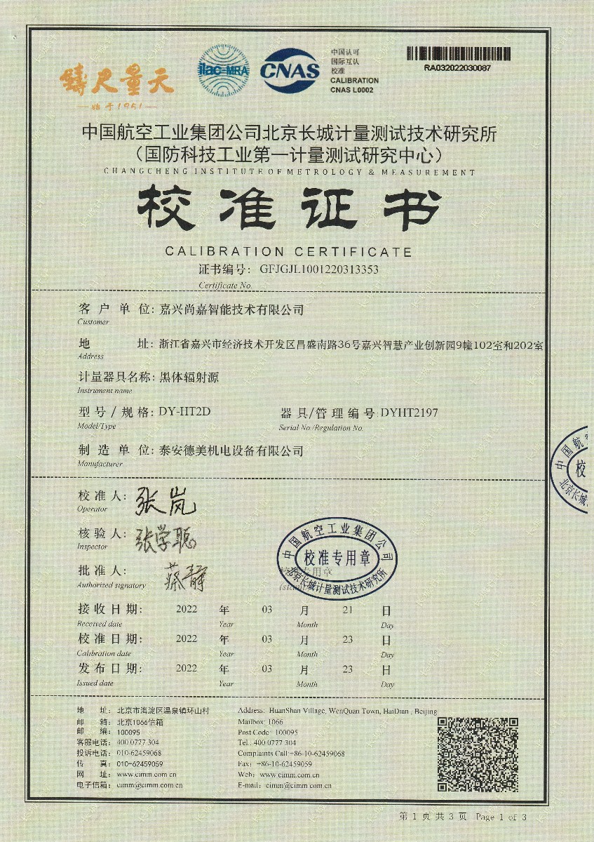 嘉興尚嘉智能技術有限公司黑體輻射源(DY-HT2D) 2022-3-29 本文被閱讀 12153 次