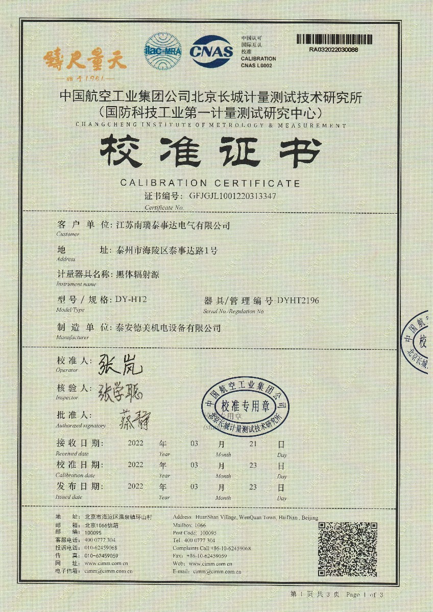 江蘇南瑞泰事達電氣有限公司-黑體輻射源 2022-3-29 本文被閱讀 15309 次